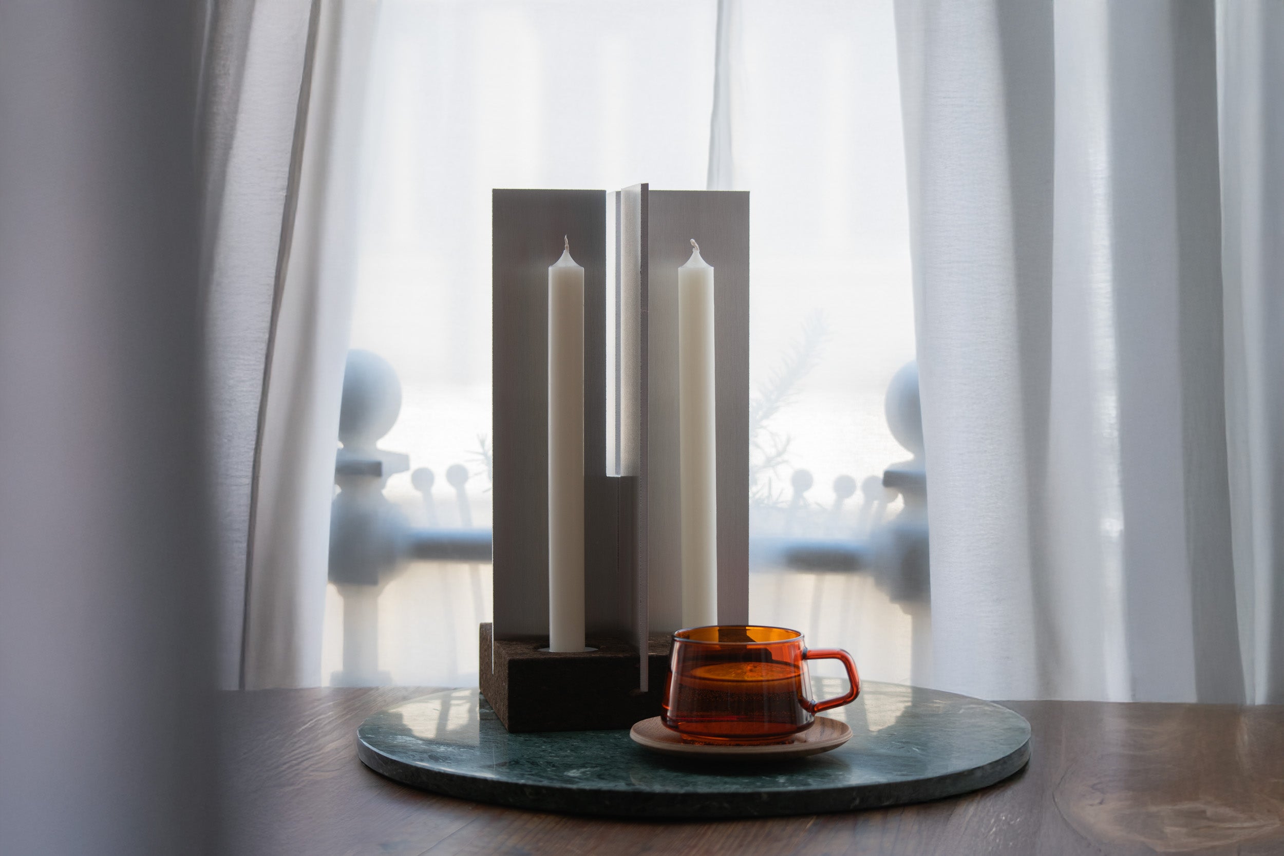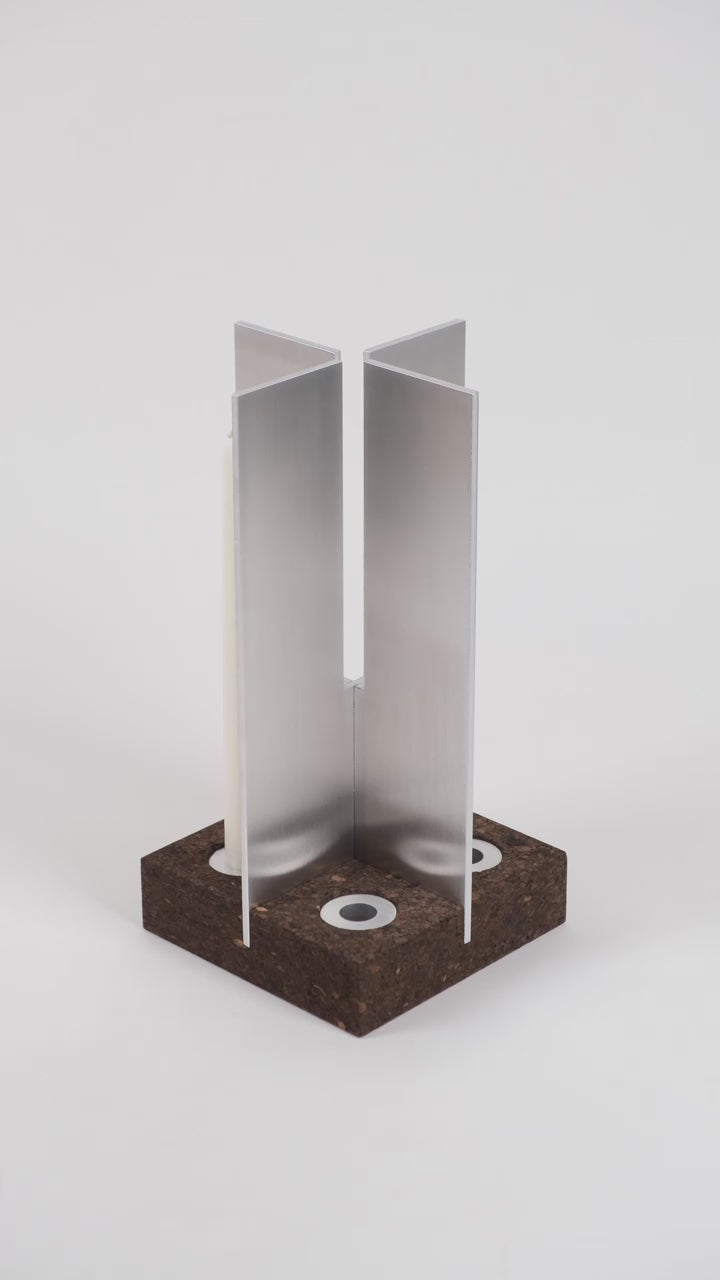The candle holder CX-CA-02 combines the warm feel of Portuguese cork with the clarity and stability of satin-finished aluminum. The result is a minimalist home accessory with a sculptural effect. Reduced design meets sustainable materials and precise craftsmanship – a clear design language for contemporary interiors.
