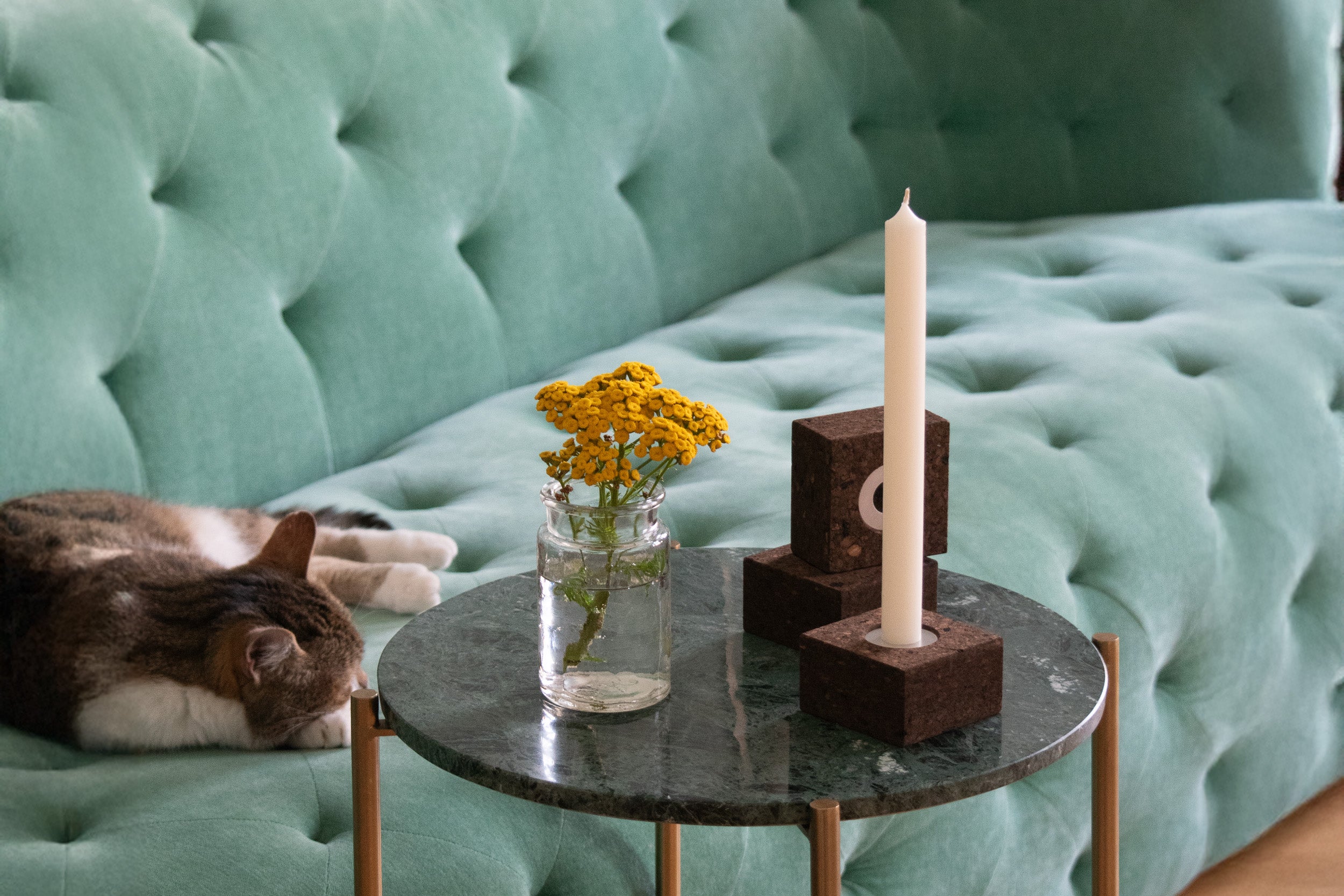 The candle holder CX-CA-03 combines the warm feel of Portuguese cork with the clarity and stability of satin-finished aluminum. The result is a minimalist home accessory with a sculptural effect. Reduced design meets sustainable materials and precise craftsmanship – a clear design language for contemporary interiors.