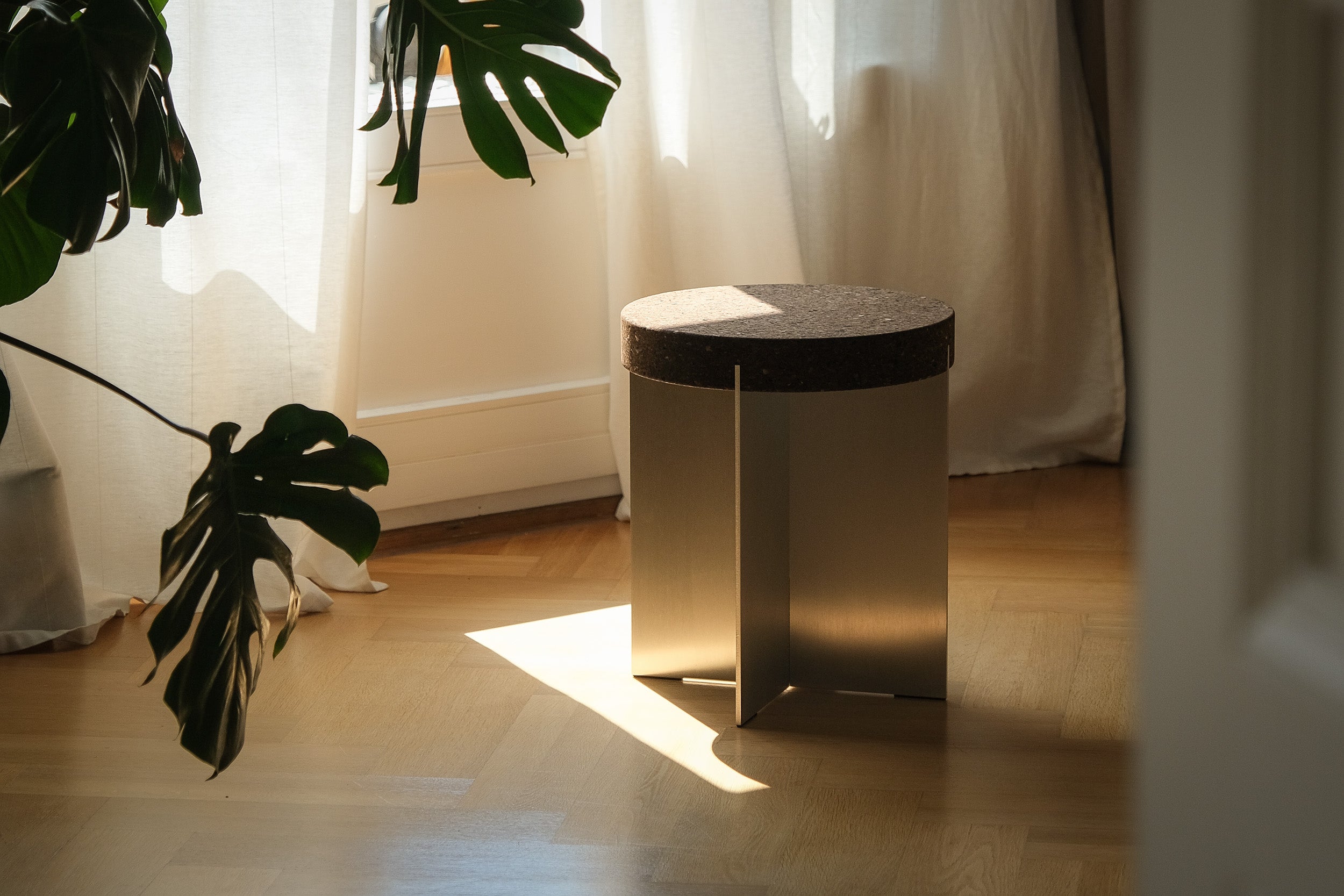 The Chair CX-CH-01 combines the warm feel of Portuguese cork with the clarity and stability of satin-finished aluminum. The result is a minimalist chair whose precise construction makes it as easy to assemble as it is versatile. Reduced design meets sustainable materials and precise craftsmanship – a clear design language for contemporary interiors.